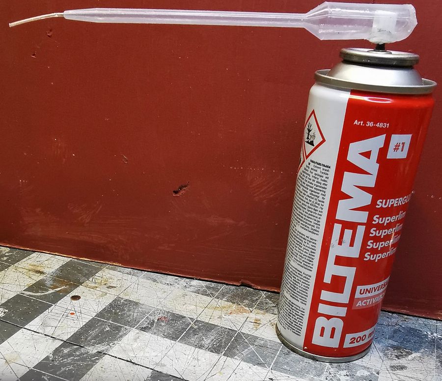 herder til sekund lim. Tar en pipette, lager et hull med varm loddebolt